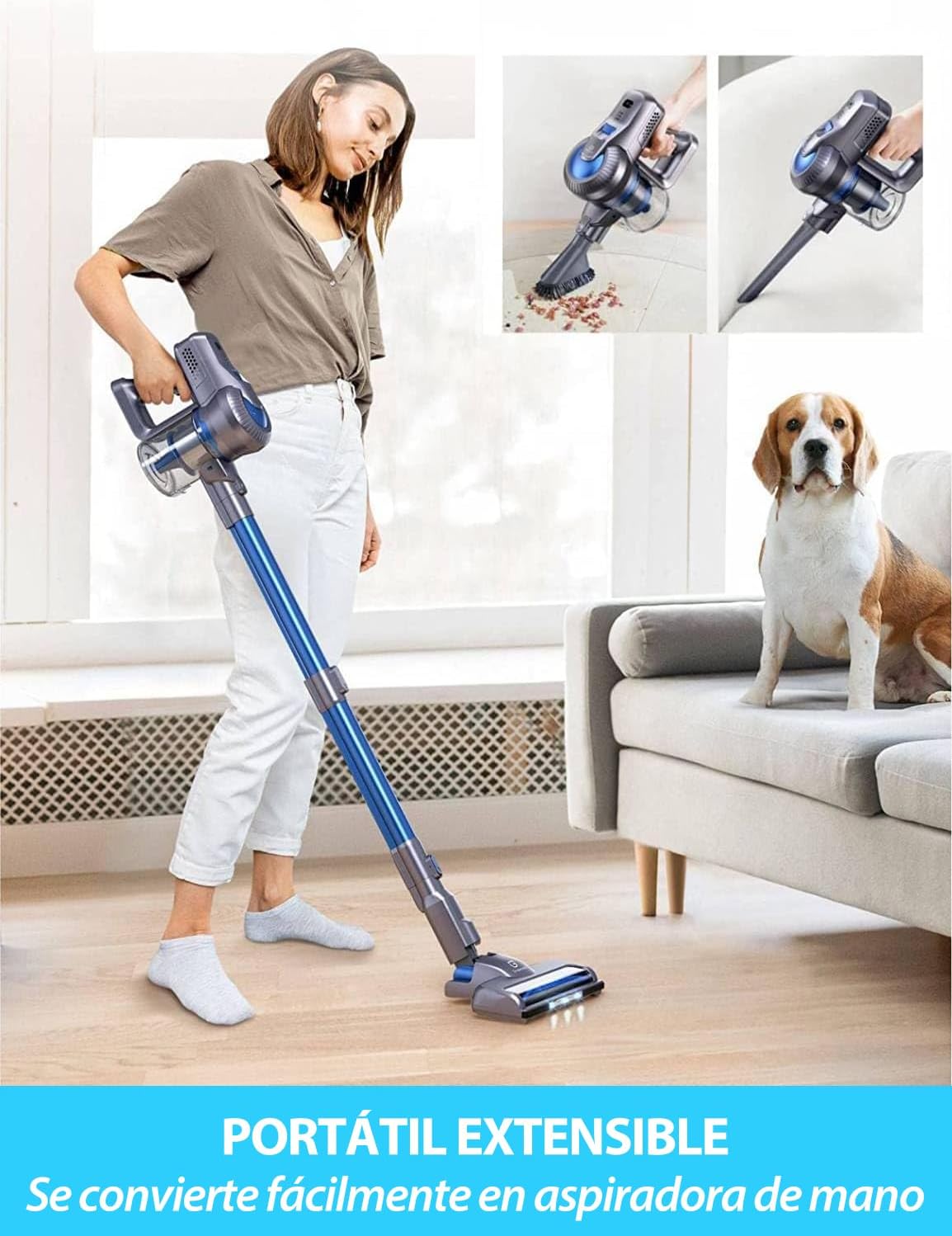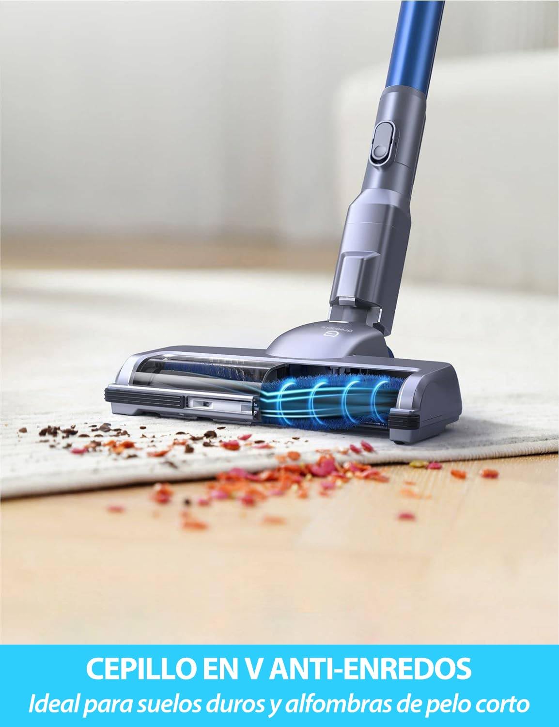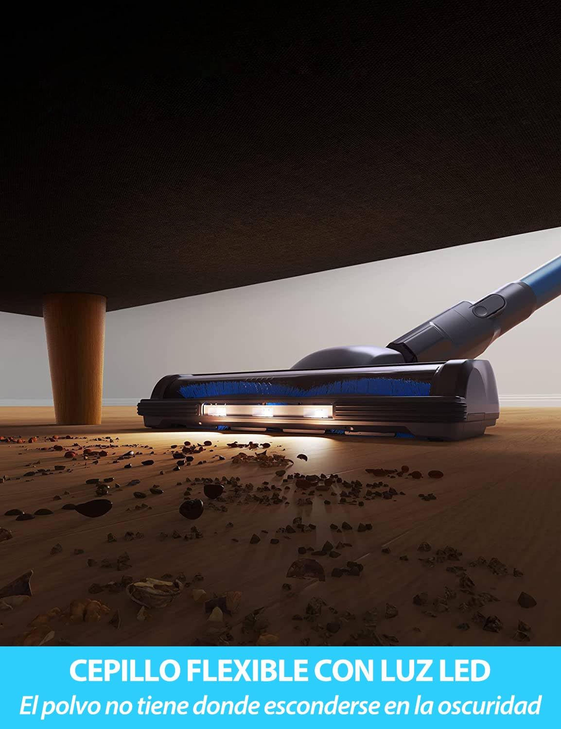 - Aspiradora 6 en 1: Incluye varios cabezales de cepillo, es fácil de montar y apta para limpiar en diferentes situaciones. Limpia eficazmente baldosas, suelos de madera y moquetas de pelo corto, además de escaleras, techos, coches y muebles. El cabezal LED incluido permite limpiar fácilmente los rincones oscuros, asegurando una limpieza profunda de todas las zonas.